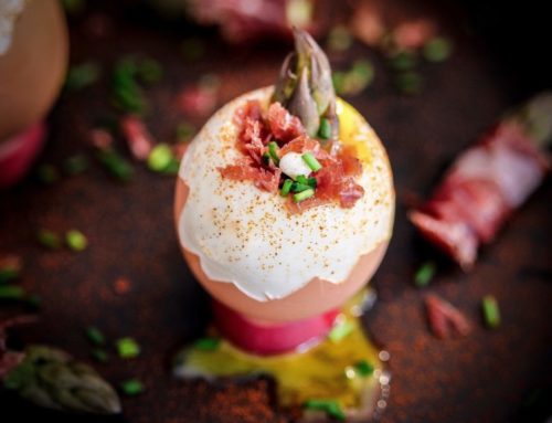 Pour la présentation, casse 2 oeufs et garde les jaunes d’oeufs dans leurs coquilles. Dépose au centre de chacune des assiettes un jaune d’oeuf. C’est prêt !